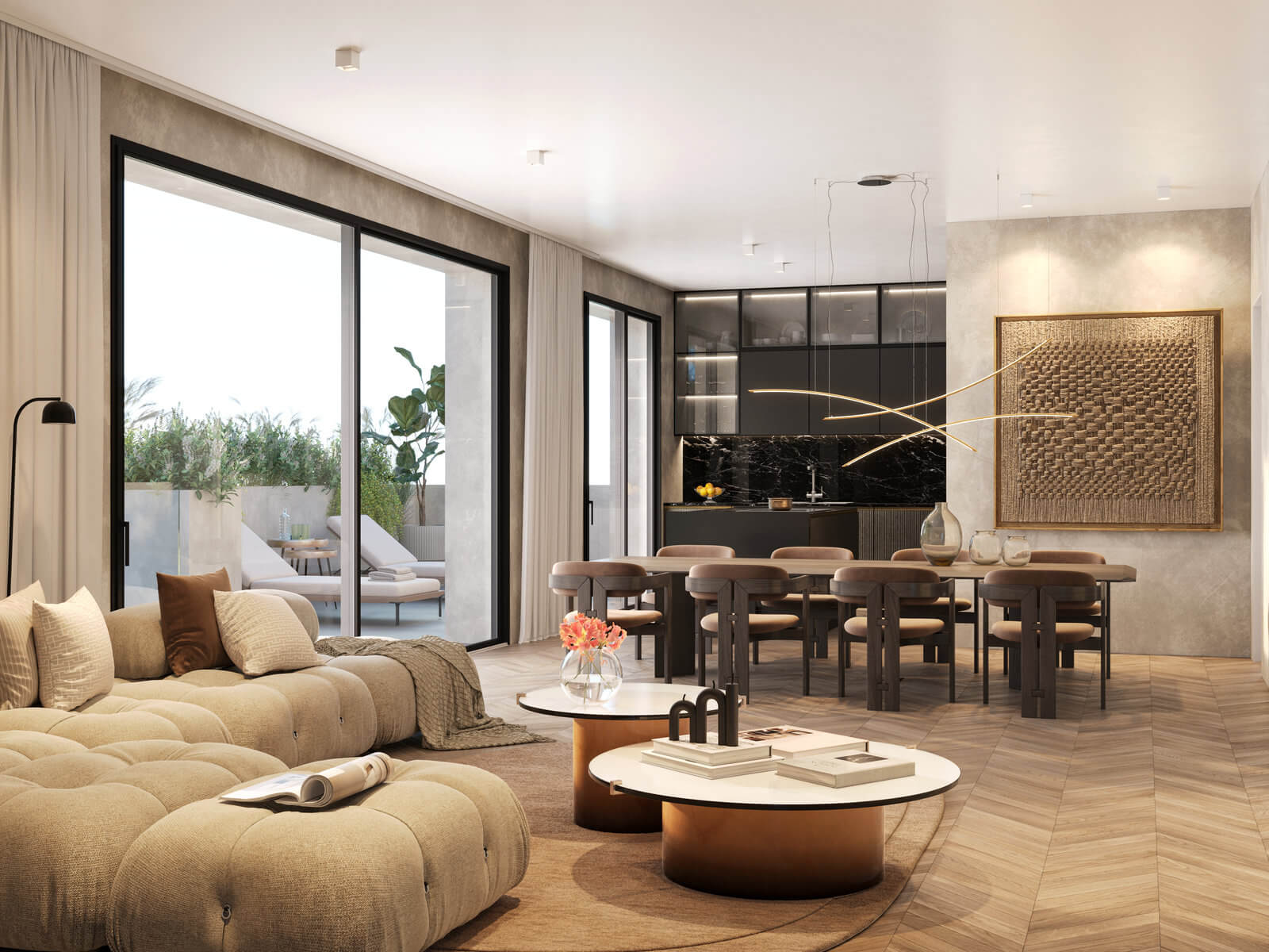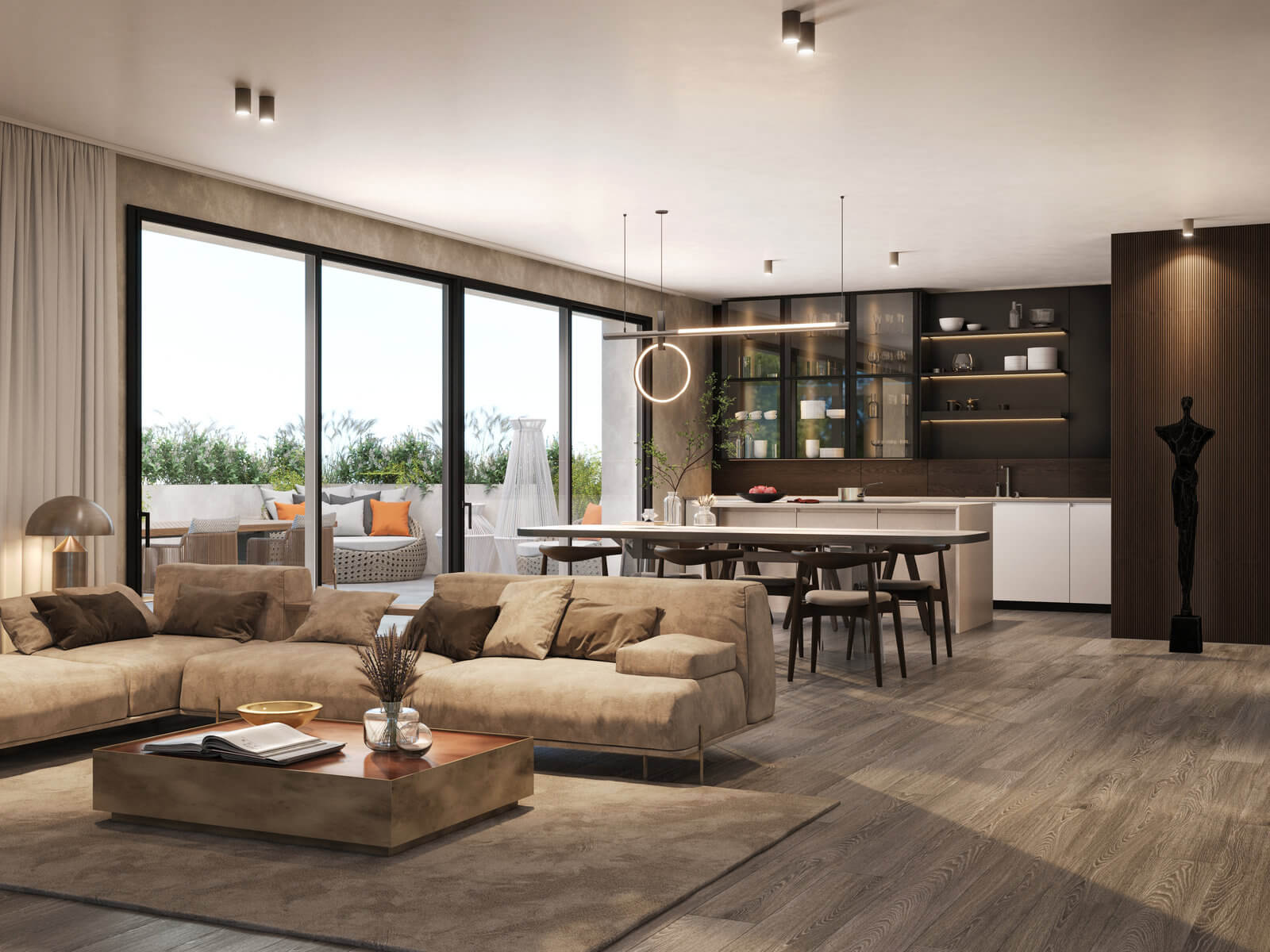 Le nostre soluzioni abitative sono state progettate per mettere al centro il benessere di chi le vive. Ogni unità si distingue per zone giorno straordinariamente luminose, dove le ampie vetrate abbattono i confini tra interno ed esterno, inondando gli ambienti di luce naturale.